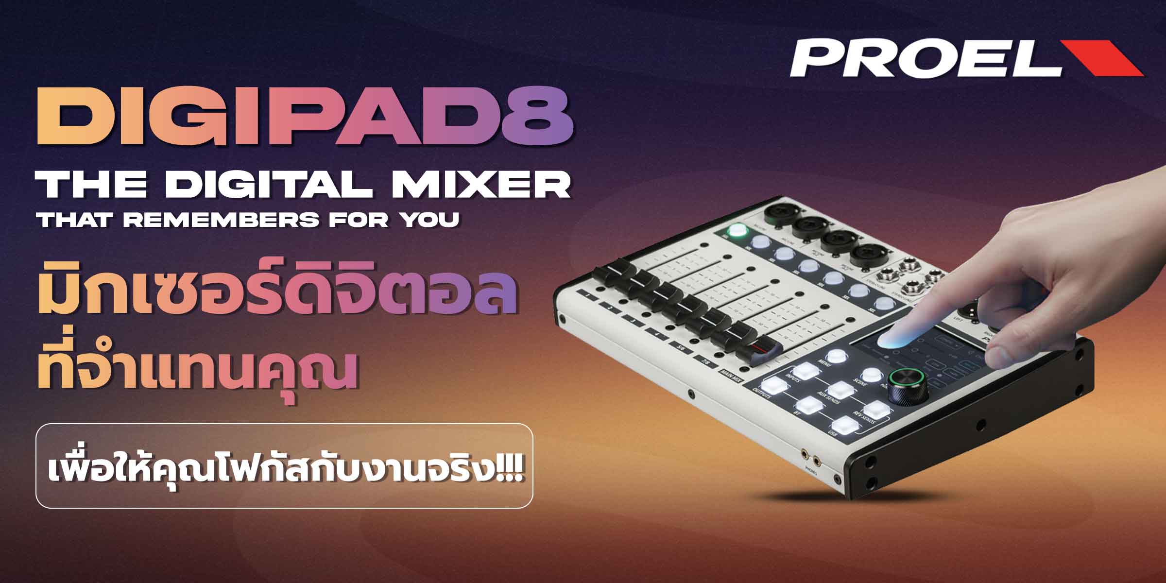 Expert Selection: ผ่านการคัดเลือกจากผู้เชี่ยวชาญที่ไม่ได้มองแค่ยอดขาย แต่คำนึงถึงผลลัพธ์ของงานเสียงเป็นหลักมาร่วมเจาะลึกกันว่ามิกเซอร์ดิจิทัลรุ่นนี้มีดีอะไร และทำไมถึงเป็นอุปกรณ์ที่คุ้มค่ากับการรอคอยสำหรับคนทำเสียงตัวจริงมิกดิจิตอล Proel Digipad8 Digital MixerDIGIPAD8 มาพร้อมความคล่องตัวก้าวเข้าสู่โลกแห่งการมิกซ์เสียงแห่งอนาคตกับ DIGIPAD8 ดิจิทัลมิกเซอร์ขนาดกะทัดรัดที่นิยามมาตรฐานใหม่ให้กับมิกเซอร์ในระดับเดียวกัน ออกแบบโดย Proel เพื่อมอบประสิทธิภาพระดับมืออาชีพในรูปแบบที่พกพาสะดวก DIGIPAD8 ผสมผสานเทคโนโลยีดิจิทัลล้ำสมัยเข้ากับความง่ายในการใช้งาน เป็นคู่หูที่สมบูรณ์แบบสำหรับนักดนตรี ซาวด์เอนจิเนียร์ และครีเอเตอร์ที่ต้องการทั้งความแรง...