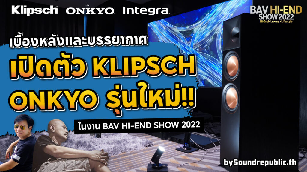 ในงาน BAV Hi-End Show 2022 ช่วงวันที่ 9 – 12 มิถุนายน 2565 ที่ผ่านมานั้น Klipsch และ Onkyo ได้นำสินค้าที่มาใหม่ในปี 2022 ไปร่วมโชว์เป็นครั้งแรกในงานไม่เพียงเท่านั้น ยังได้รับการสนับสนุนจาก คุณชวิน (Home Theater setup) Schwin Sak Khongkachonkiat Home Theater setup by Schwin และ คุณหมอเอก (MorAek Hometheater) MorAek Hometheater มาร่วมเซ็ทอัพระบบเสียงตามหลักการที่ถูกต้อง "โดย THX AAA Calibrator ชั้นนำของประเทศ" และบรรยายในหัวข้อ “Klipsch Immersive sounds Atmos Enable” ที่เรียกได้ว่าเป็นความรู้ให้แก่ผู้ที่มาร่วมฟังคำบรรยายและได้ฟังการเซ็ทอัพเสียงที่ดีที่สุดกับชุดโฮมเธียเตอร์รุ่นใหม่ล่าสุดจาก Klipsch อีกด้วย