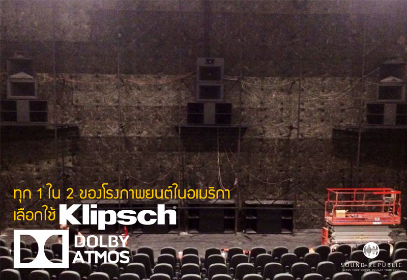 1.Klipsch ซึ่งเป็นแบรนด์หลัก ในการติดตั้งระบบเสียง Dolby Atmos ในโรงหนังชั้นนำที่อเมริกา ซึ่งทุก 1 ใน 2 ของโรงภาพยนตร์เลือกติดตั้ง Klipsch เพราะ Klipsch ได้มีการถอดรหัสความสำเร็จจากลำโพงโรงภาพยนตร์มาสู่ลำโพง ชุดโฮมเธียเตอร์ ด้วย DNA เดียวกัน
