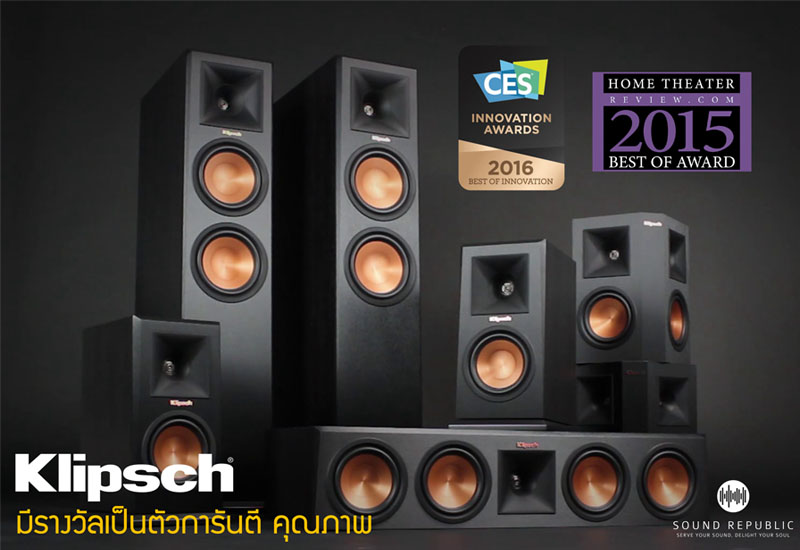 6.Klipsch เองไม่ได้มีดีแค่ชื่อเสียง แต่ยังมีรางวัลที่เป็นตัวการันตี เพื่อรับรองทั้งในเรื่องของคุณภาพลำโพง ชุดโฮมเธียเตอร์ ซึ่งรางวัล CES INNOVATION AWARDS 2016, HOME THEATER REVIEW.COM 2015 BEST OF AWARD จะเป็นตัวการันตีให้กับหลายๆคนที่สนใจและหันมาชื่นชอบและหลงรักในตัวของลำโพง Klipsch