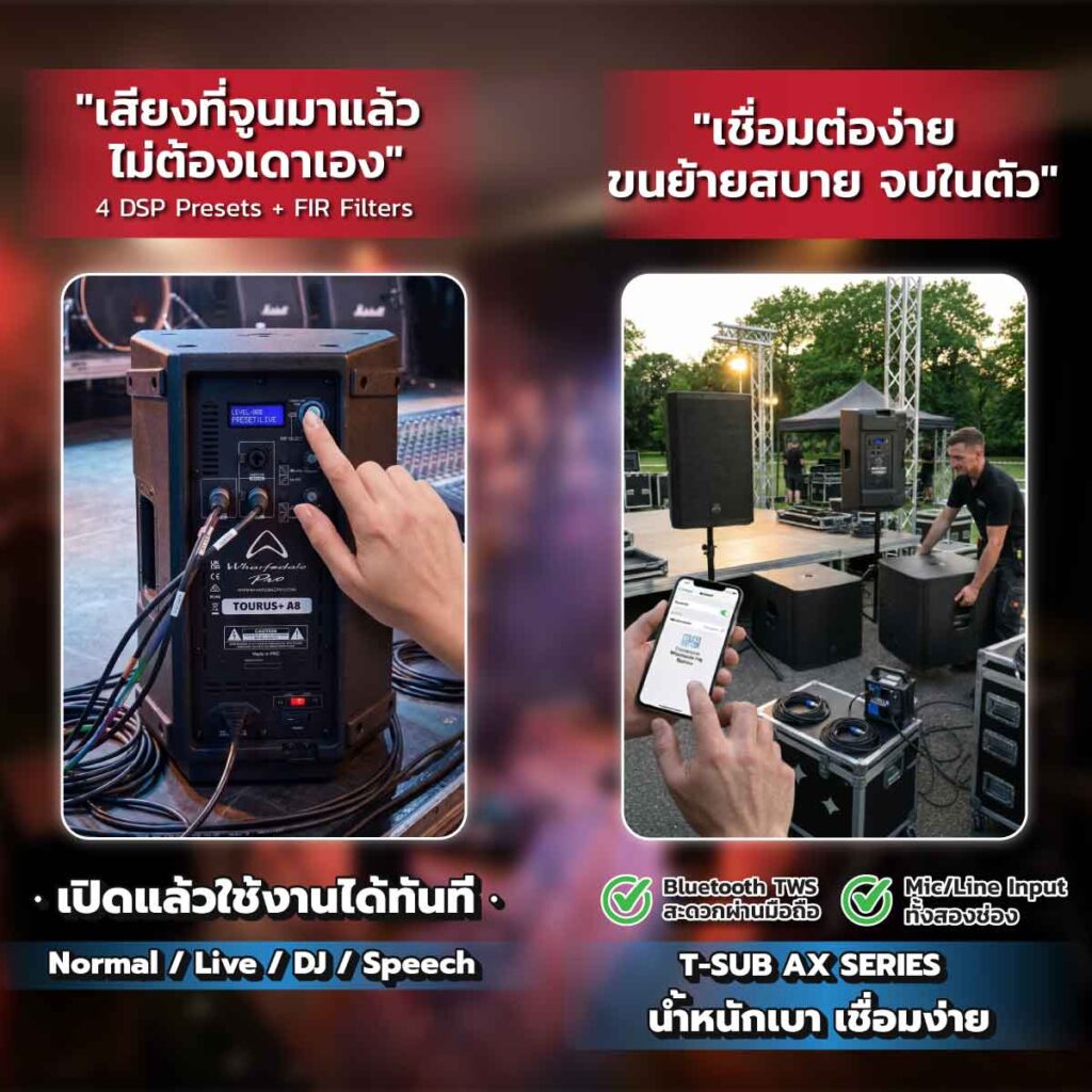 เสียงดีไม่ต้องเดา: มี 4 DSP/FIR Presets (Normal, Live, DJ, Speech) จูนมาให้เสร็จสรรพ เปิดปุ๊บพร้อมใช้งานปั๊บ
