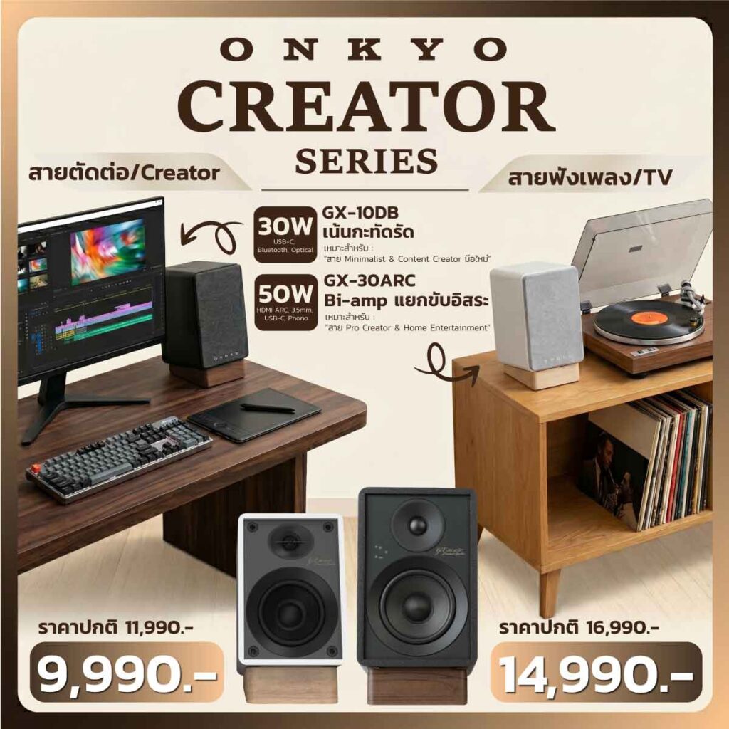 ถ้าคุณกำลังมองหาความแตกต่างที่มากกว่าลำโพงคอมพิวเตอร์ทั่วไป เตรียมพบกับ Onkyo Creator Series ไลน์ผลิตภัณฑ์ใหม่ล่าสุดที่ออกแบบมาเพื่อ "ทลายขีดจำกัด" ระหว่างงานสตูดิโอและไลฟ์สไตล์แบบ Audiophile นี่คือไอเทมลับที่จะเปลี่ยนเสียงที่คุณ "ได้ยิน" ให้กลายเป็นเสียงที่คุณ "สัมผัส" ได้ถึงรายละเอียด ไม่ว่าจะเป็นจังหวะบีทที่ต้องเป๊ะสำหรับการตัดต่อวิดีโอ หรือเสียงเครื่องดนตรีที่แยกชั้นกันอย่างชัดเจนขณะฟังเพลงโปรด