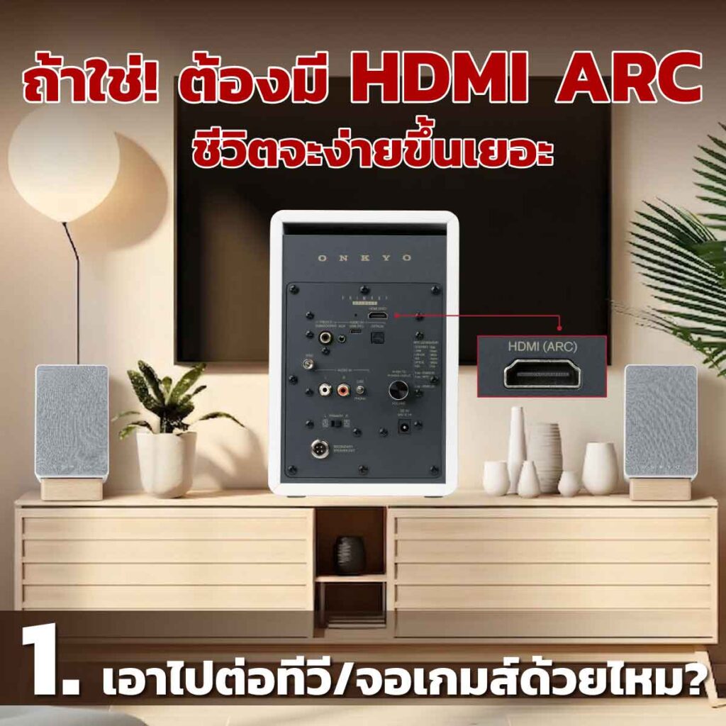 ถ้าคำตอบคือ "ใช่" ลำโพงคอมที่คุณเลือก ต้องมีพอร์ต HDMI ARC ครับ เพราะจะช่วยให้ชีวิตง่ายขึ้นมหาศาล สายเส้นเดียวจบ เปิด-ปิดทีวีพร้อมลำโพง และใช้รีโมทเดิมคุมเสียงได้เลย ไม่ต้องวุ่นวายหาลำโพงแยกให้เต็มโต๊ะ