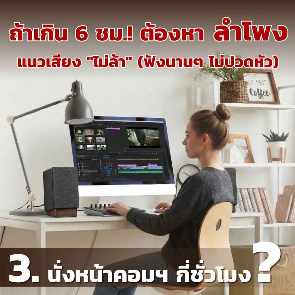 ถ้าคุณเป็นสาย Work from Home หรือเกมเมอร์ที่นั่งหน้าคอมเกิน 6 ชั่วโมงต่อวัน แนวเสียงที่ "ไม่ล้าหู" คือหัวใจสำคัญ ครับ ควรเลือกลำโพงที่มีสมดุลเสียงดี เบสไม่บวม แหลมไม่บาดหู เพื่อให้ฟังต่อเนื่องได้นานๆ โดยไม่รู้สึกปวดหัวหรือล้าหูจนต้องถอดหูฟังหรือปิดลำโพงทิ้ง