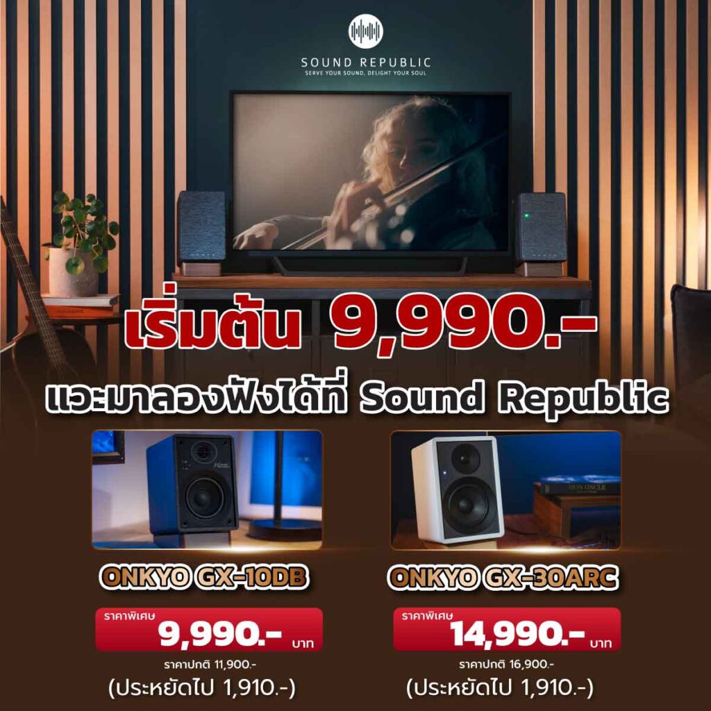 เริ่มต้นเพียง 9,990.- เท่านั้น! อยากรู้ว่าเสียงนุ่มและใช้งานง่ายแค่ไหน แวะมาลองฟังตัวจริงได้ที่ Sound Republic ทุกสาขาครับ เพราะลำโพงที่ดีที่สุด คือลำโพงที่คุณได้ลองฟังด้วยตัวเอง!