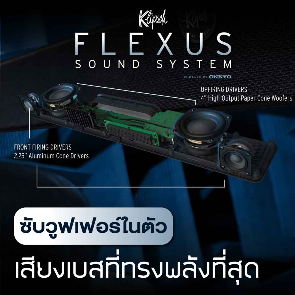 - เหมาะสำหรับผู้ที่วางแผนจะขยายระบบเสียงในอนาคต ด้วยความสามารถในการเชื่อมต่อลำโพงเพิ่มเติมในระบบ Klipsch Flexus และซับวูฟเฟอร์ซีรี่ส์อื่น ๆ