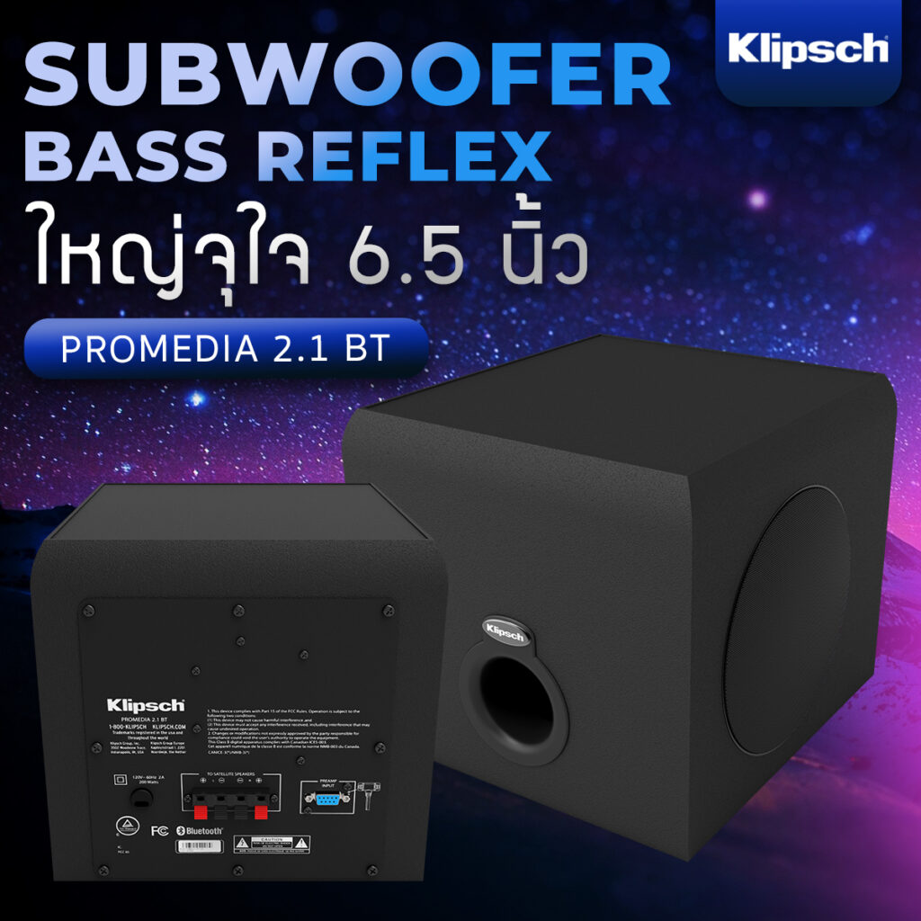 ลำโพงคอมพิวเตอร์ Klipsch ProMedia 2.1 BT Computer Speaker จะมีท่อระบายลม Bass Reflex ในลักษณะวงกลมเพื่อลดลมในตู้ลำโพง และ ความผิดเพี้ยนของเสียงที่จะเกิดขึ้นได้ ย่านเสียงต่ำจะกระชับ นิ่ง ไม่ขัดใจแน่นอน