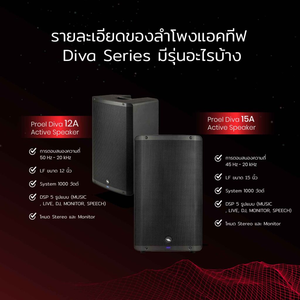 รายละเอียดของลำโพงแอคทีฟ Diva Series มีรุ่นอะไรบ้าง