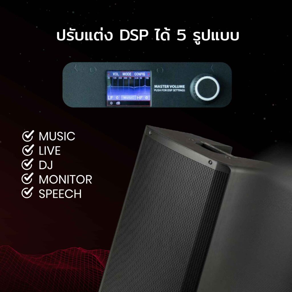 - DSP 5 รูปแบบ (MUSIC, LIVE, DJ, MONITOR, SPEECH)
