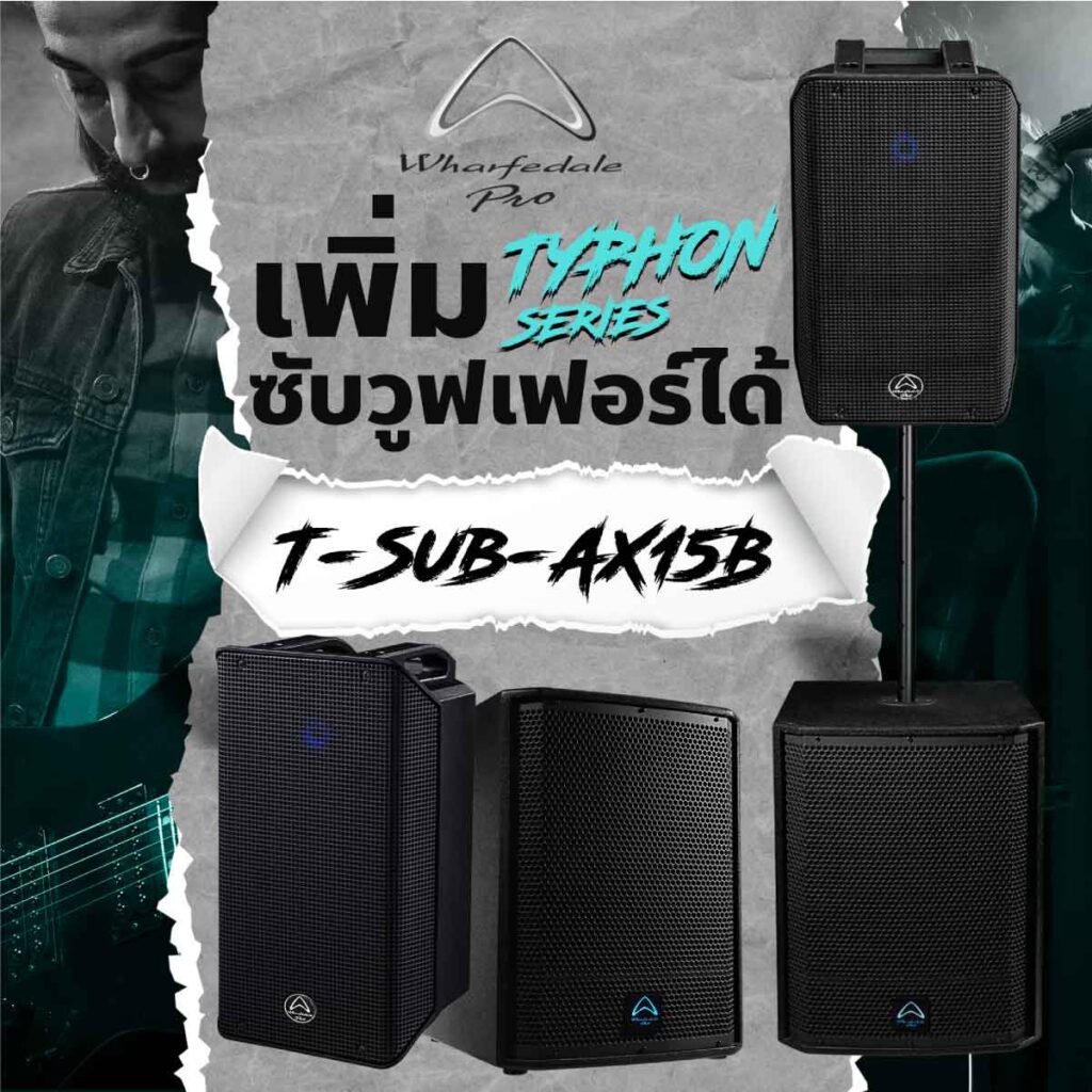 ลำโพงแอคทีฟ Wharfedale Pro Typhon Series Active Speaker เพิ่มประสิทธิภาพให้ระบบ TYPHON ด้วยซับวูฟเฟอร์แอคทีฟ T-Sub-AX15B จะเป็นตัวเลือกที่เข้าคู่กันอย่างลงตัว ด้วยกำลังขับ 700 วัตต์แบบคลาส D ที่ขับเคลื่อนไดรเวอร์ WP ขนาด 15 นิ้ว โดย T-Sub-AX15B จะถูกจัดแมตช์เสียงเพื่อให้เข้ากับ TYPHON ได้อย่างสมบูรณ์แบบ