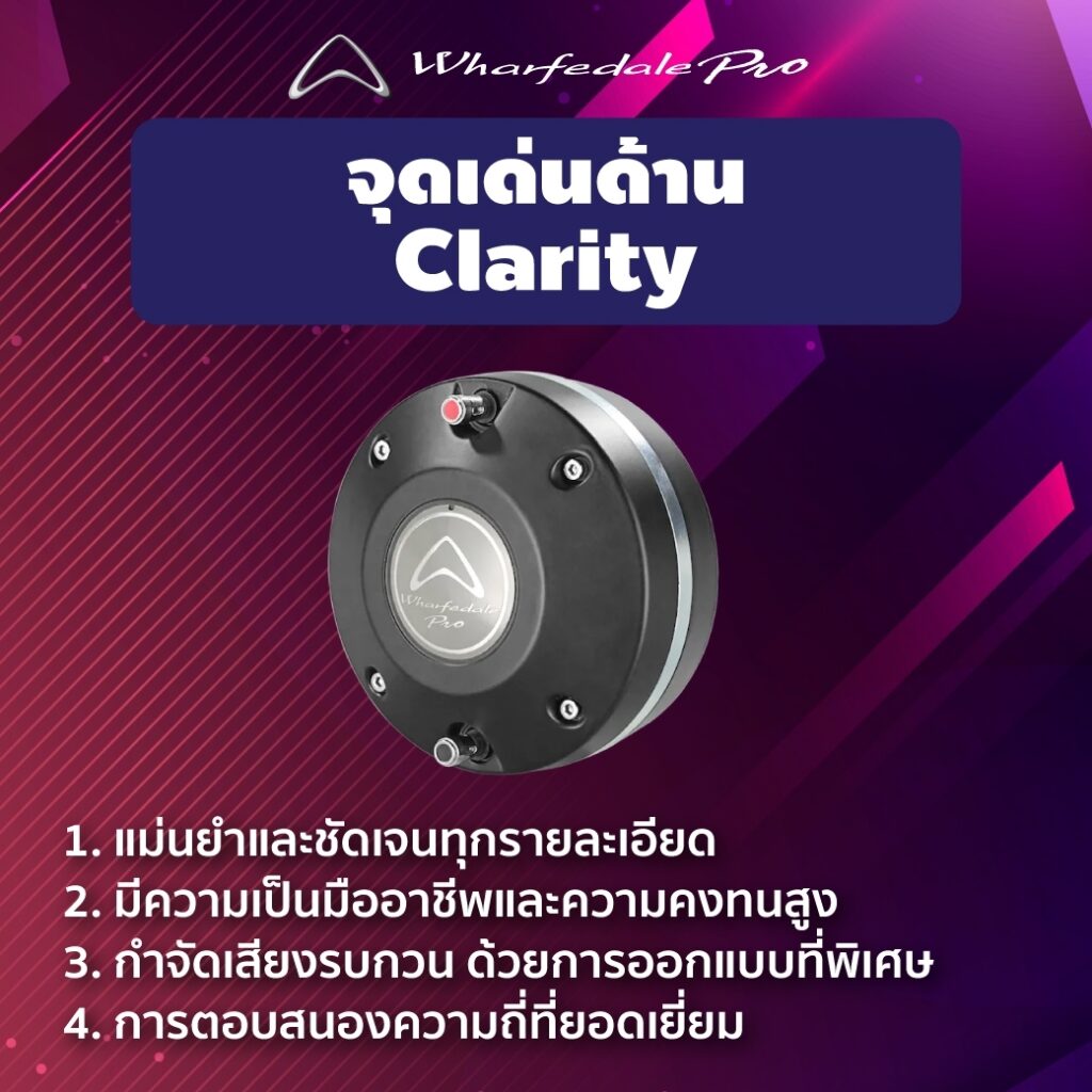 จุดเด่นตัวสินค้า Wharfedale Pro WLA-28A ด้าน Clarity