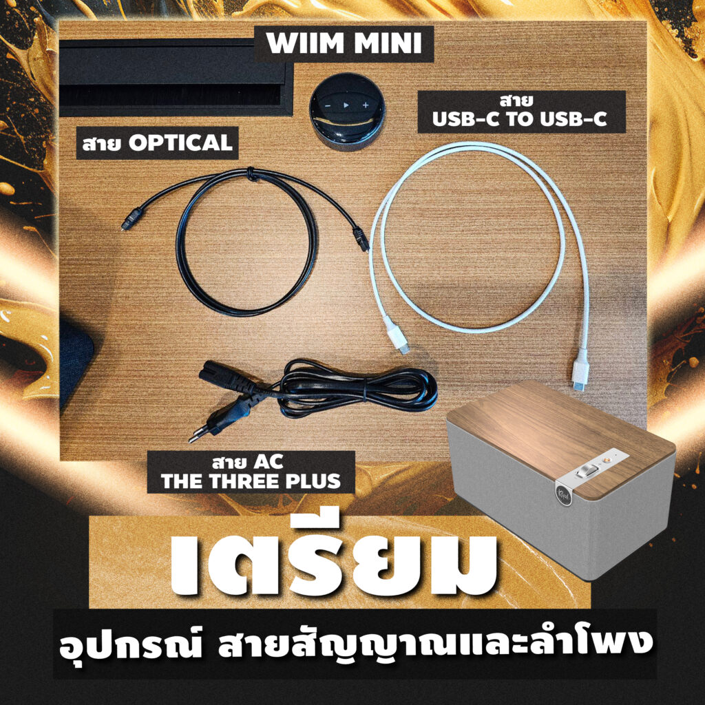 6. เชื่อมต่อสาย Optical ระหว่าง The Three Plus กับ WiiM Mini