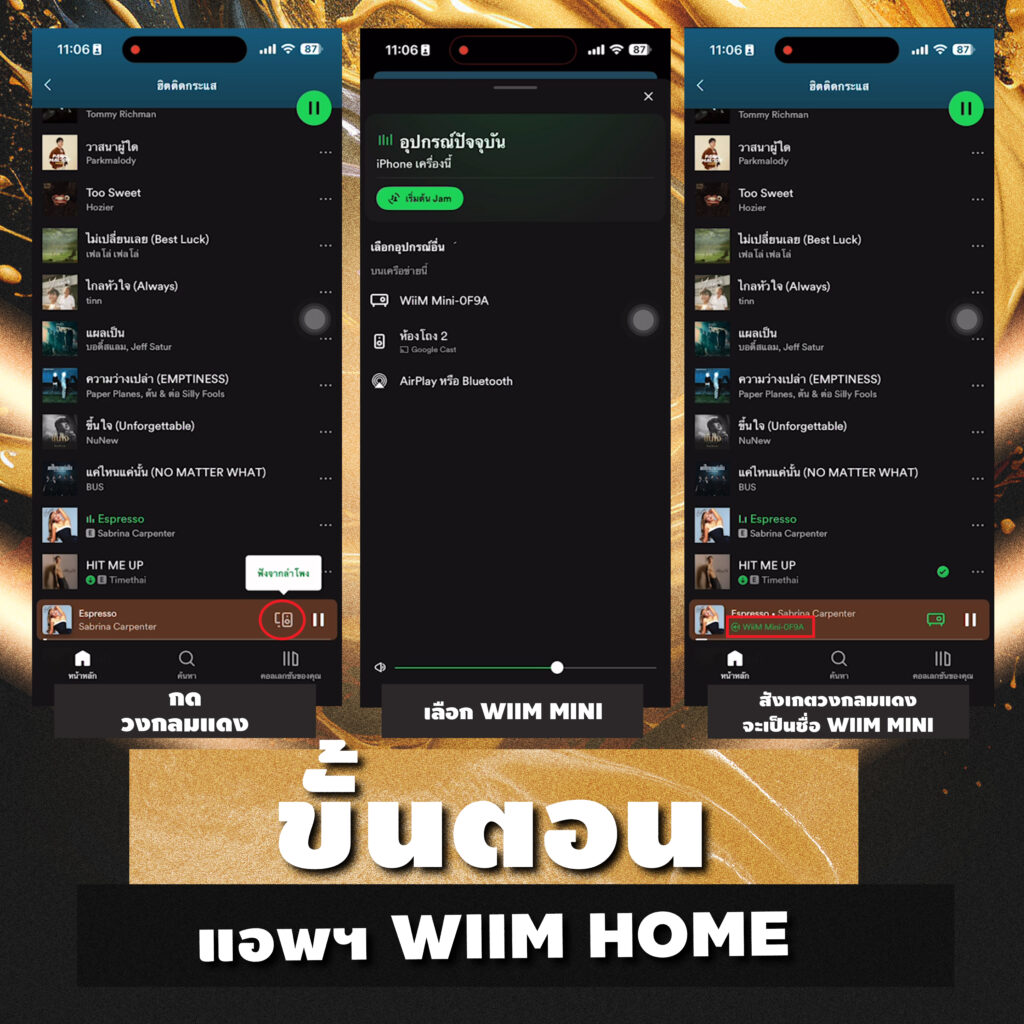 7. เปิดแอพ WiiM Home ทำตามขั้นตอน ดังนี้