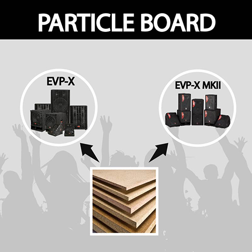 แผ่นไม้อัดเป็นวัสดุที่มีน้ำหนักเบาและแข็งแรงทนทาน โดยปกติจะมีพรมปูติดมาด้วยกาวอย่างดี เหมาะสำหรับผู้ที่มองหาลำโพงที่ราคาไม่แพงมาก น้ำหนักเบา ขนย้ายง่าย