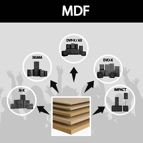 ไฟเบอร์บอร์ด(MDF) มีความหนาแน่นและแข็งแรงกว่าไม้อัด ด้วยราคาที่สูงกว่าไม้อัดและโครงสร้างที่แข็งแรงและมีประสิทธิภาพกว่า เพราะทำมาจากเส้นใยไม้ทำให้ตัวไฟเบอร์บอร์ด(MDF) ไม่มีเศษไม้และพื้นผิวที่ราบทำให้พื้นผิวเรียบ ไม่ขรุขระ มีน้ำหนักที่มากกว่าไม้อัด เหมาะสำหรับผู้ที่มองหาลำโพงที่ราคากลางๆ ความคงทนที่มีมากกว่าไม้อัด