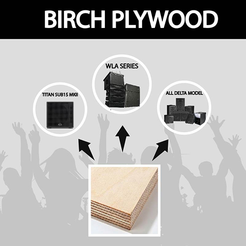 สำหรับตัวลำโพงที่มีระดับ Hi-end จะใช้ไม้อัดเบิร์ชคุณภาพสูงจากรัสเซีย มีความหนาแน่นและทนทานกว่า MDF และทนต่อสภาพอากาศที่ชื้นได้ เหมาะสำหรับมืออาชีพที่มองหาลำโพงคุณภาพเยี่ยม ใช้งานได้ในทุกสภาพแวดล้อม