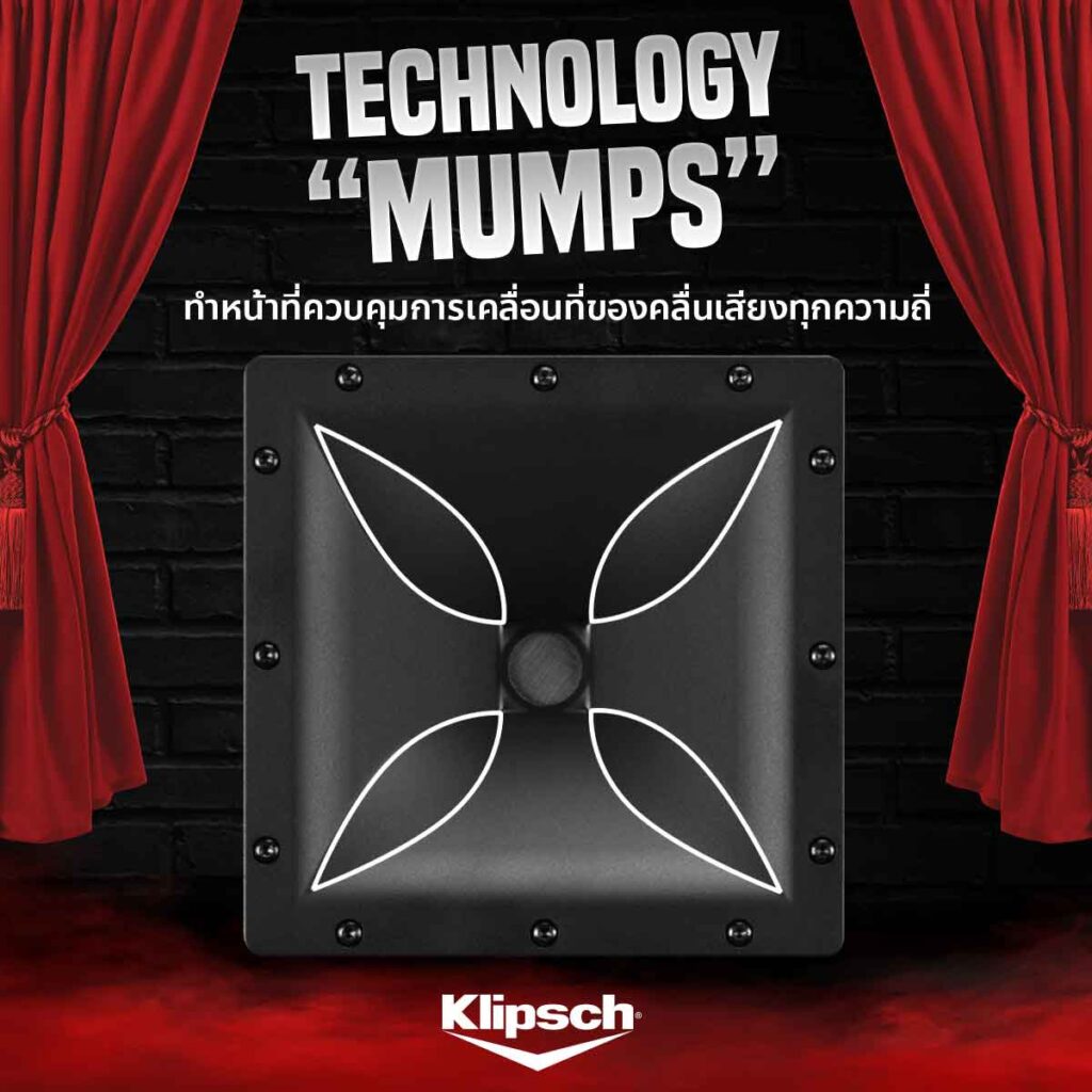 เทคโนโลยีแผ่นแทรกรูปวงรี (Elliptical Inserts) หรือ "mumps" ที่ได้รับการจดสิทธิบัตรเฉพาะของ Klipsch ทำหน้าที่ควบคุมการเคลื่อนที่ของคลื่นเสียงทุกความถี่ที่ผลิตจากปากลำโพง โดยเฉพาะในย่านความถี่ต่ำ ให้เคลื่อนที่ไปตามแนวโค้งของปากลำโพง ส่งผลให้การกระจายเสียงในทุกย่านความถี่เป็นไปตามรูปแบบการกระจายเสียงที่ออกแบบไว้อย่างมีประสิทธิภาพ