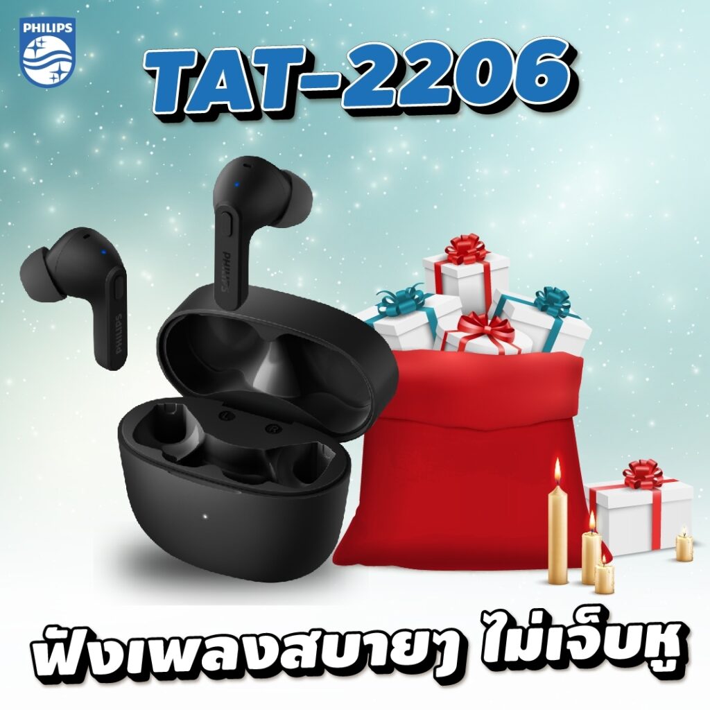 สำหรับชิ้นที่สองที่เราจะมาแนะนำให้คุณอีกรุ่นคือ Philips TAT2206 หูฟังแบบ True Wireless มาพร้อมความเท่และสีดำสุดคลาสสิค เหมาะสำหรับใส่ฟังเพลงสบายๆ ไม่เจ็บหูรูปทรงที่เล็กทำให้พกพาสะดวกใช้งานได้สูงสุด 20 ชั่วโมงเพียงการชาร์จให้เต็มต่อหนึ่งครั้งและด้วยราคาที่ไม่แพงมากนักจึงเหมาะแก่การให้เป็นของขวัญหรือการนำมาจับฉลาก