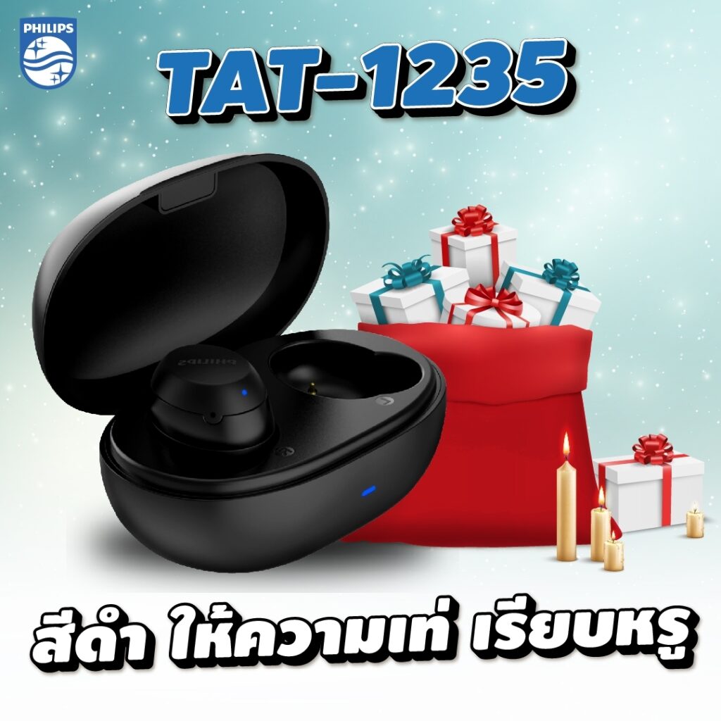 สำหรับชิ้นแรกจะเป็นหูฟังบลูทูธแบบ True Wireless นั่นคือรุ่น Philips TAT1235 ตัวหูฟังมีขนาดกระทัดรัดเรียกได้ว่าสามารถเก็บใส่กระเป๋าเป้หรือกระเป๋าเสื้อของคุณได้อย่างง่ายดาย มาพร้อมด้วยรูปลักษณ์สีดำให้ความเท่ เรียบหรูเหมาะสำหรับการใช้งานฟังเพลงที่ถือได้ว่าเป็นไอเทมหนึ่งที่คุณต้องมี Philips TAT1235 สามารถเล่นเพลงได้นานถึง 18 ชั่วโมงเป็นหูฟังที่คุ้มค่าและเหมาะจะเป็นของขวัญให้คนพิเศษของคุณ