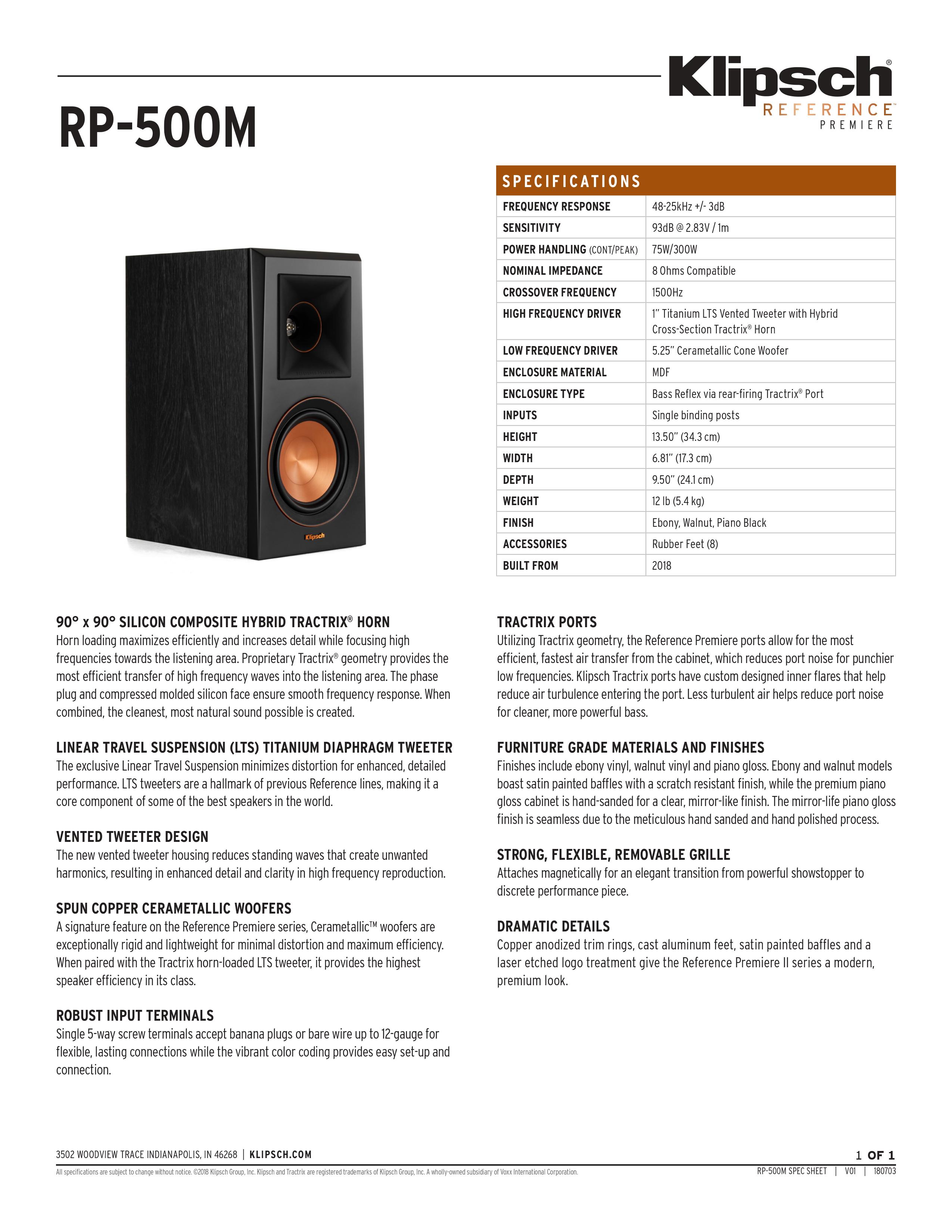 Get incredible cinema-quality stereo sound with the RP-500M bookshelf speakers. Klipsch proprietary technology is built on over 70 years of acoustic experience to deliver the best home theater experience possible.